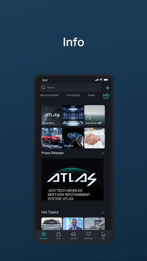 ATLAS offers significantly more than just the traditional vehicle functions of the previous app. It also provides creative and interesting features such as entertainment, social networking, brand promotion, shopping malls, e-wallet payment, and many others. Combining IHU and the cloud platform, it provides a full-scene vehicle experience and comprehensive services.