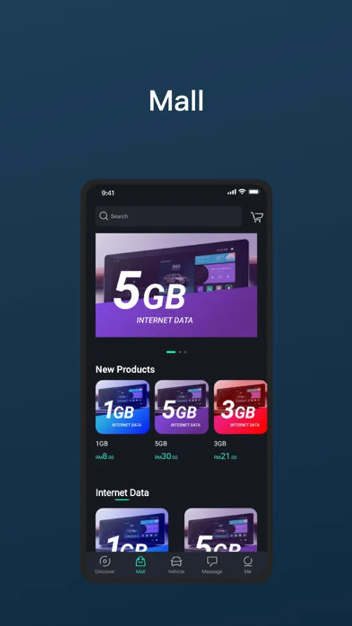 Mall: Features virtual products such as internet data package purchase, and VIP services.
