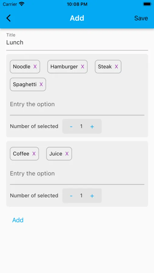 1. 添加你的选项和你需要获得多少个结果,然后App给你随机选择一些选项。