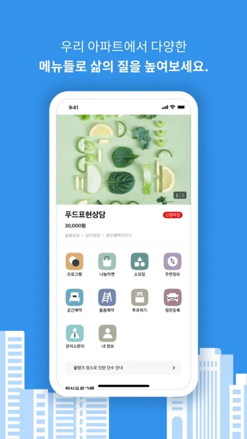 입주민을 위한 아래와 같은 기능이 있습니다.