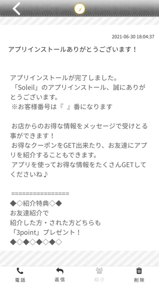 SoleilのアプリをSNSを通じてお友達に紹介する事ができます。