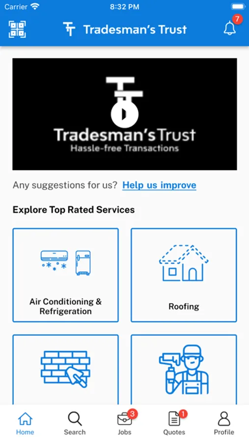 With an inbuilt trade directory for customers that provides Tradesman’s Trust service providers with fresh job leads, our unique performance reviewing system and a simple app layout, your trade experience expectations will be forever changed. Tradesman’s Trust is the future of trade transactions and we encourage you to try us out! It’s free to join! Welcome to the new world of secure payments and quality tradesmen.