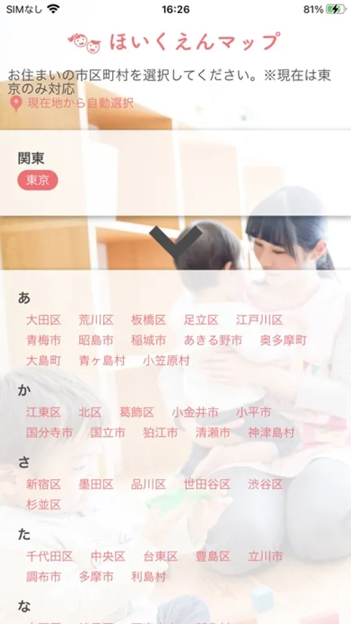 お住まいの市区町村の保育園を地図上で探せます(現在は東京のみ対応)。