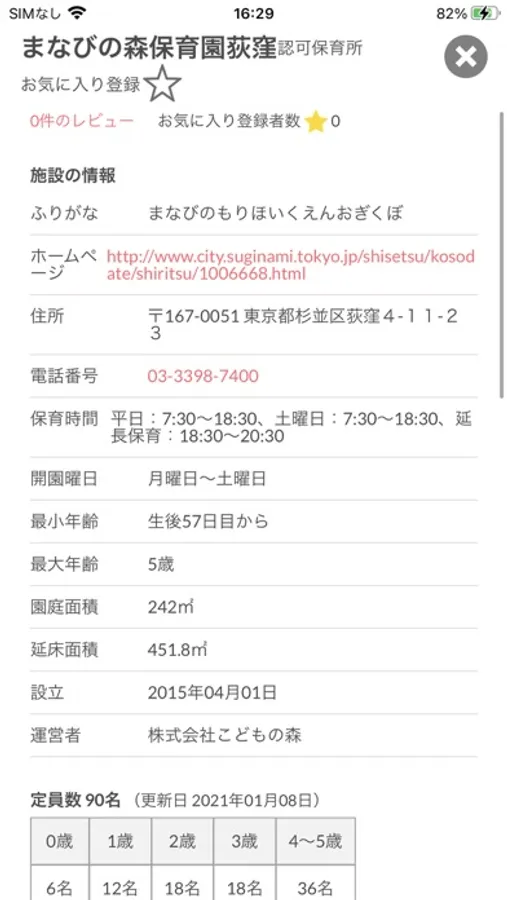 各保育園の詳細ページには施設の詳細情報の他、園のホームページや、他のサービスの施設情報へのリンクがあるので、WEBで検索せず保育園の情報を集めることができます。