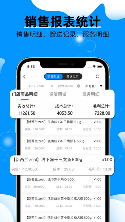 ④销售清晰报表:各项销售数据展示,收支情况更清晰,智能分析商品数据