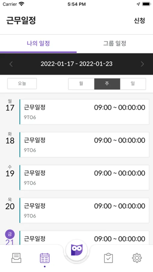 - 앱을 통하여 휴무 신청서를 제출하고 회사 관리자의 승인, 반려를 모바일로 내역을 조회가능합니다.