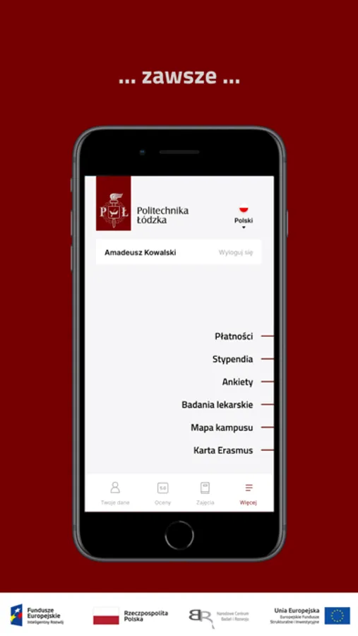 Aplikacja mobilna przeznaczona jest dla studentów Politechniki Łódzkiej. Jej uruchomienie ma na celu wzrost satysfakcji studentów, którzy otrzymająnarzędzie w wersji mobilnej, zawierającedane dotyczące ich toku studiów.W Aplikacji student znajdzie większośćfunkcjonalności z Webdziekanatu, między innymi wszystkie niezbędne informacje o płatnościach i stypendiach, a takżebędziemógłzweryfikowaćoceny i punkty ECTS uzyskane w poszczególnych semestrach.Aplikacja mobilna została stworzona w ramach projektu Zintegrowany Program Politechniki Łódzkiej na rzecz rozwoju regionu łódzkiegowspółfinansowanego przez UnięEuropejską w ramach Europejskiego Funduszu Społecznego.