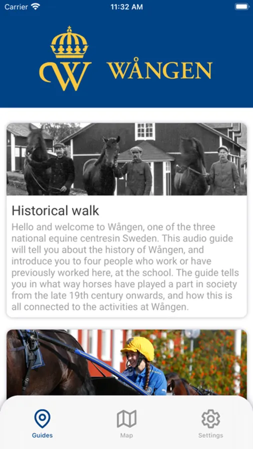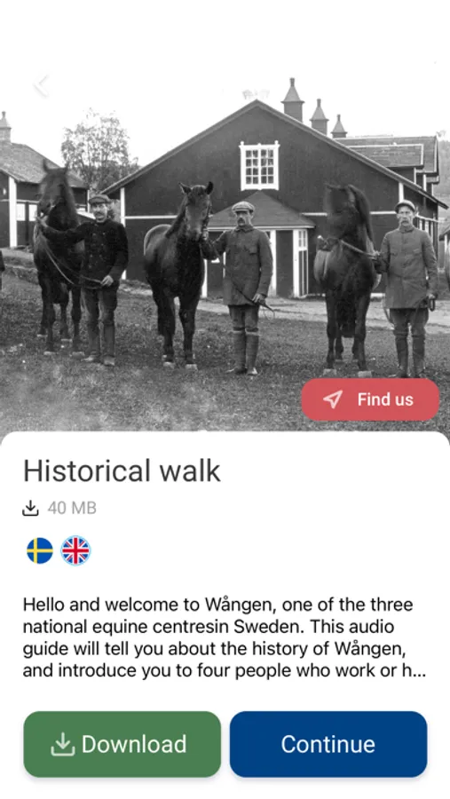 I den här appen visar vi dig runt på anläggningen. Du får träffa folk som är verksamma på Wången idag, träffa hästen Månlittra när hon besöker veterinären, och höra mer om hovslageri, aktiv grupphästhållning och våra islandshästar.