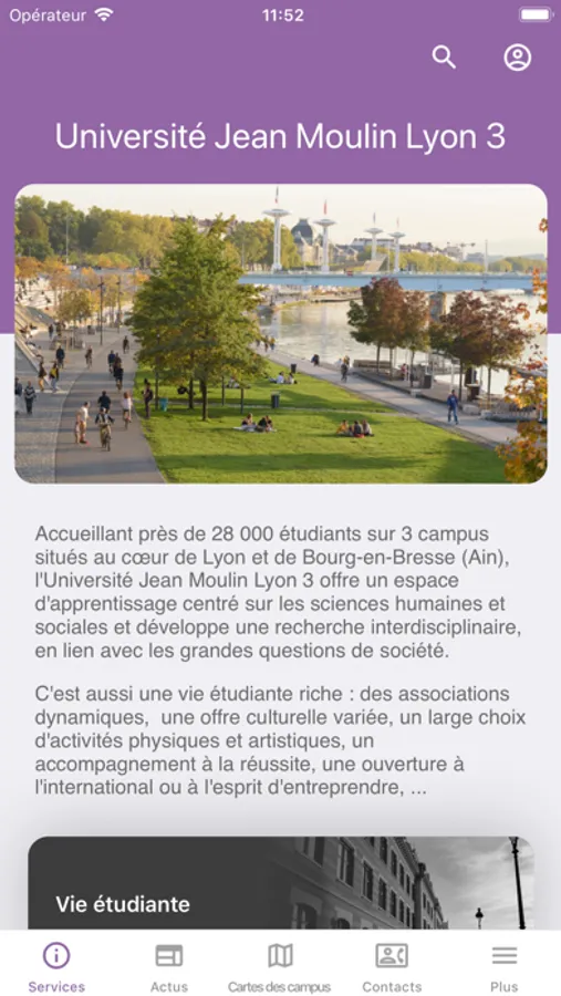 - Informations sur les campus : géolocalisation, itinéraires, coordonnées, …
