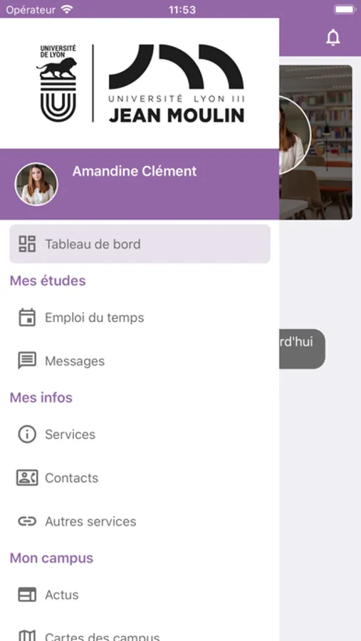 - Messages : recevez les messages de l’université (informations sanitaires, organisation de l’établissement, alertes, …)