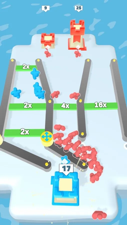 To grow your crowd and take the enemy base, launch your infantry onto multiplier gates.