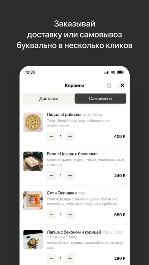 — Быстрый заказ с мгновенным подтверждением через приложение.