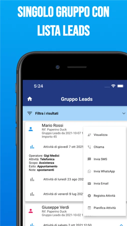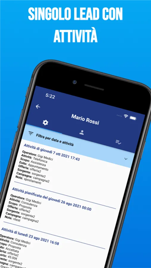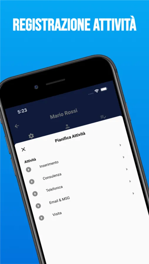 Ottimizza la gestione dei tuoi Contatti, utilizza l'App per registrare le attività fatte o pianificarne di nuove.