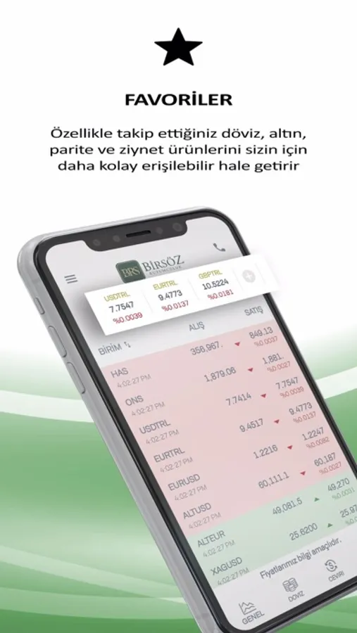 Özellikle takip ettiğiniz döviz, altın , parite ve ziynet ürünlerini sizin için daha kolay erişilebilir hale getirir.