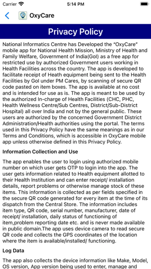 The user are whitelisted on the portal https://oxycare.gov.in by the State/District administrations. Each Health Facility consignee is updated on the portal only then the user will be able to login in the app.