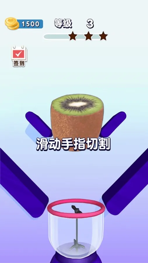 使劲切水果,让他们完全掉入果汁机里,炸出美味的果汁,大家都来体验吧!