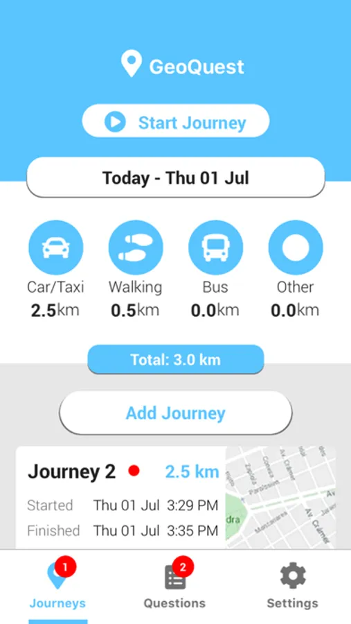 GeoQuest is a research application that combines passive tracking of survey respondent's location with active interviewing based on their movements.