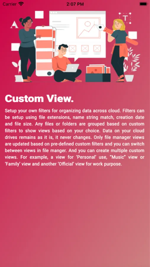 Easy and intuitive UI for accessing files and folders across multiple cloud storage providers. Many useful features such as union view, multi-account support, encrypt and decrypt files, compress multiple files and folders and extract functionality and many many more new features are included.