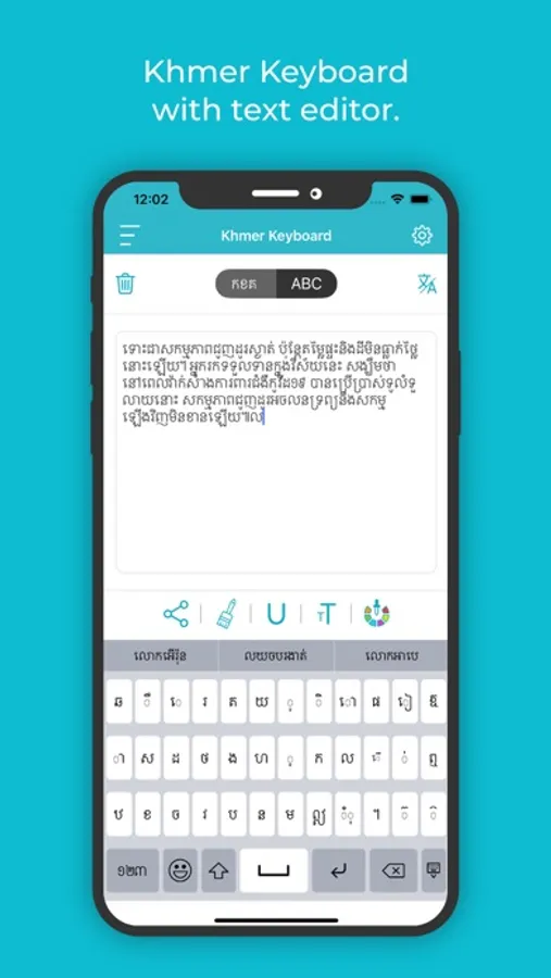 • Changing the font, the color, underlining features inbuilt in this Khmer keyboard iOS.
