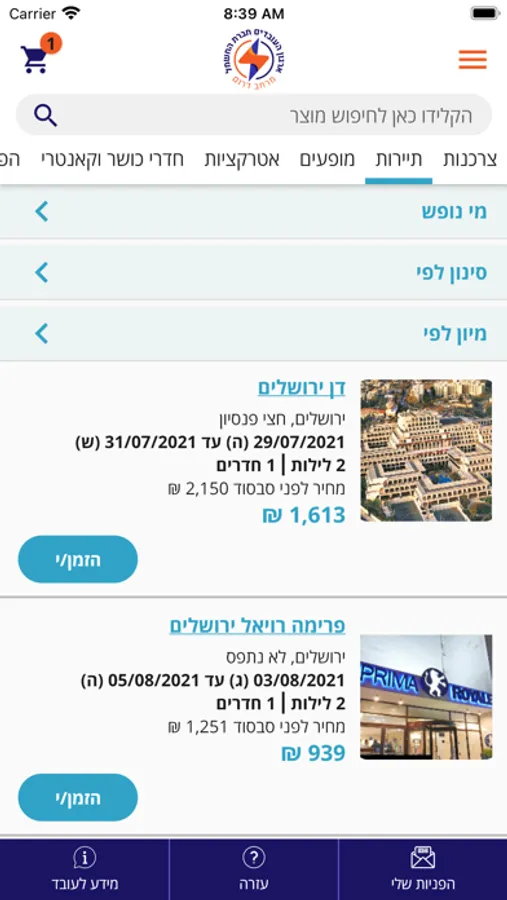 כגון מופעים, אטרקציות, מוצרי תיירות ופנאי כמו גם רישום לפעילויות ארגוניות וקבוצתיות שונות.