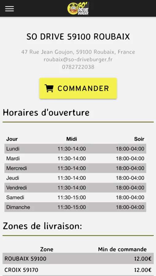 Votre restaurant So Drive Burger vous livre à domicile et au bureau vos plats préférés. Commandez en ligne facilement. Retrouvez tout vos plats préférés et l'ensemble des offres directement depuis l'application So Drive Burger.