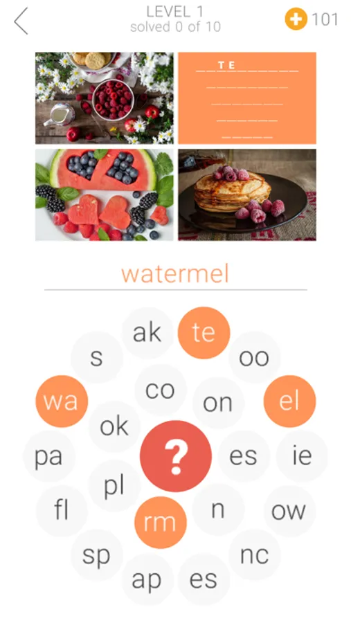 This word game will need your power of observation and attention to details. For your convenience, the words are split into short parts. Tap these fragments on the round keyboard to put the words back together.