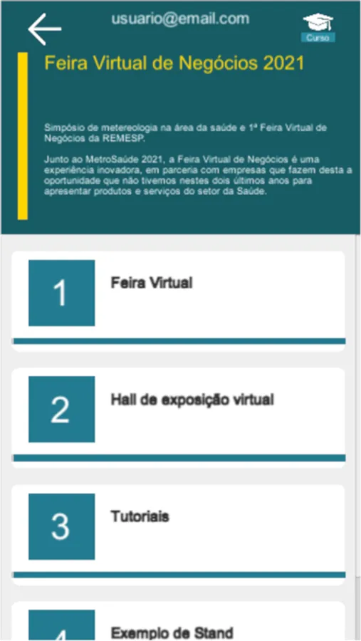 O aplicativo tem como objetivo educativo de treinar pessoas e para realização de eventos online (feira virtual).