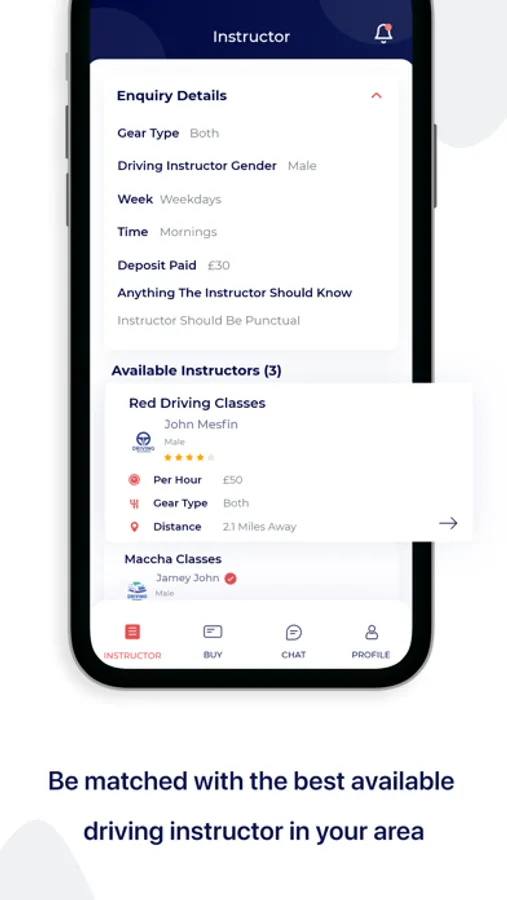 Once the form has been submitted, local driving instructors who match their criteria will show allowing them to see lesson prices and promotional offers before moving ahead and booking driving lessons.
