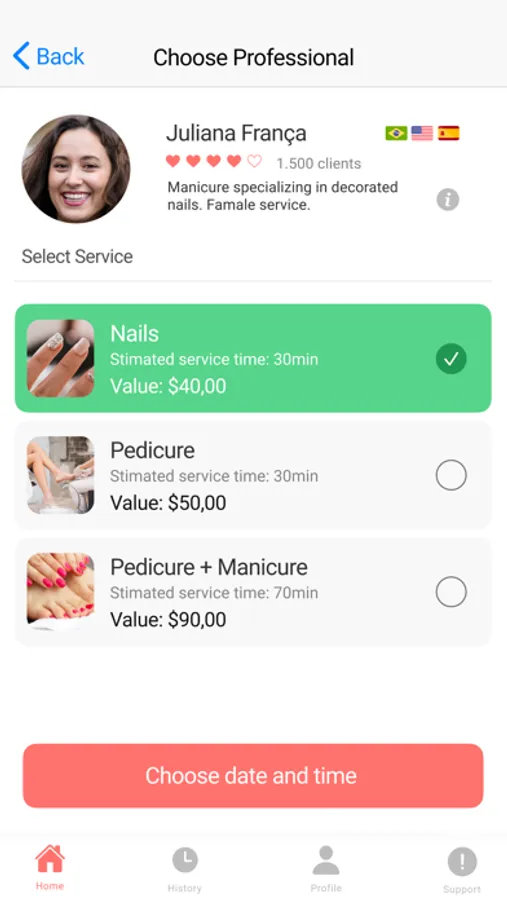 In a few clicks, it's simple to choose your date, time, address, payment method, professional, and if you want to perform only one or several simultaneous services. Our team will come to your home, hotel, work, or any location you wish and will arrive with all the products and equipment necessary to carry out a complete salon service in the comfort of your home, without crowds, waiting time, or wasting time in traffic.