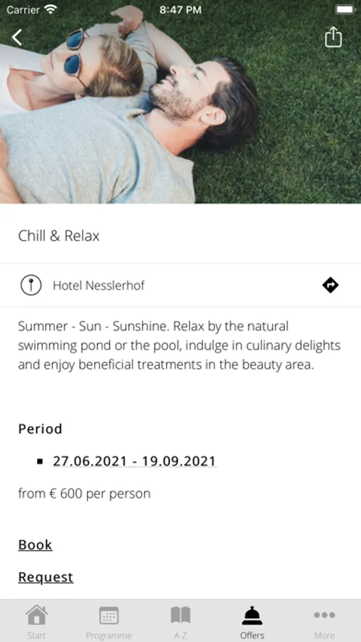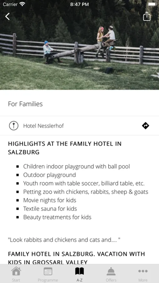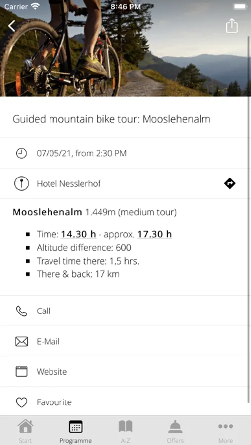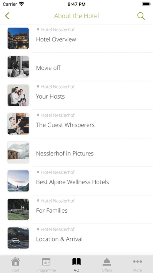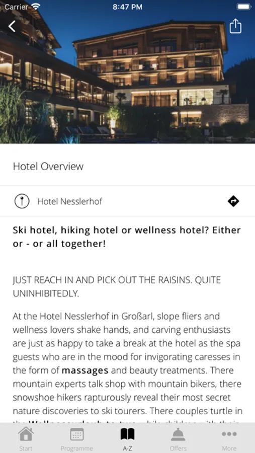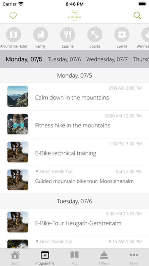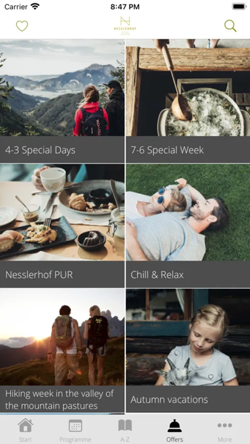 Filter by different interests such as wellness, beauty treatments, sports, culinary and family. Put together your own program. In this way, the Nesslerhof app offers content tailored to your personal needs.