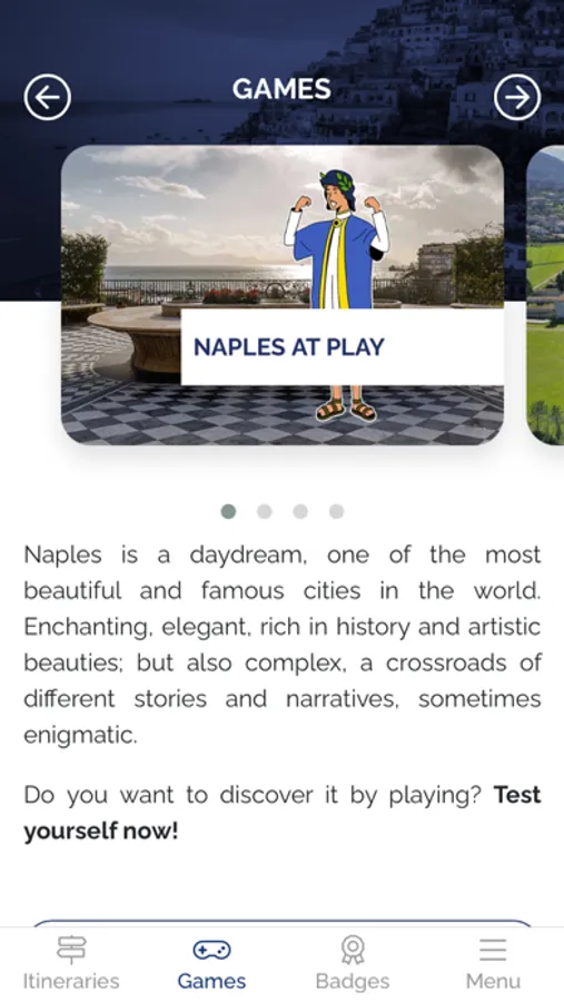 With this App you can organize your trip to Campania, play and earn badges, with the aim of discovering the wonders of the area in a new, engaging and intuitive way.