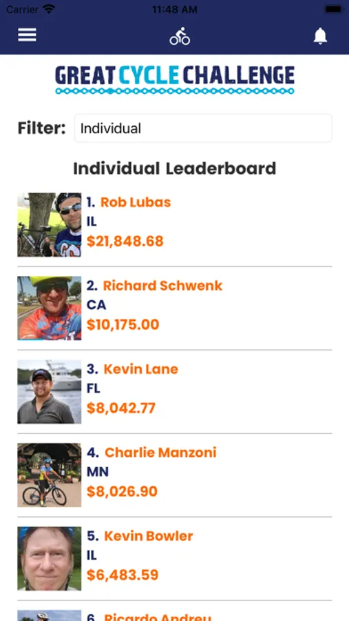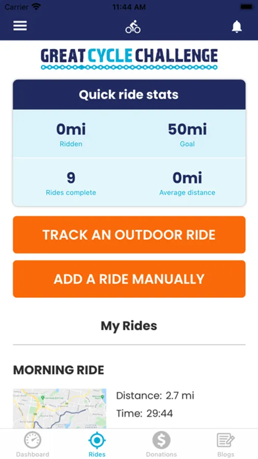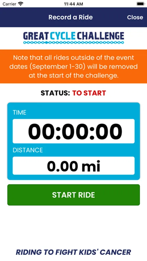 Great Cycle Challenge's mobile application uses GPS to record the distance of your bike rides while taking part in the fundraising event to fight kids' cancer. Each ride immediately syncs with your individual and team fundraising profile pages and automatically updates the distance ridden towards your event goal as you chase it down!