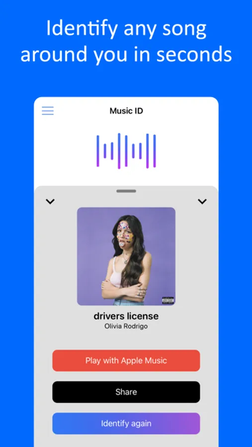 - Auto-recognition feature: the app start identifying the song when you open the app.