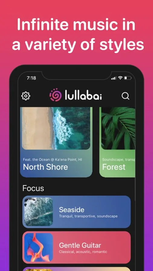 With infinite music for rest, relaxation, and focus, lullabai uses AI technology to generate music for the soothing activity of your choice.