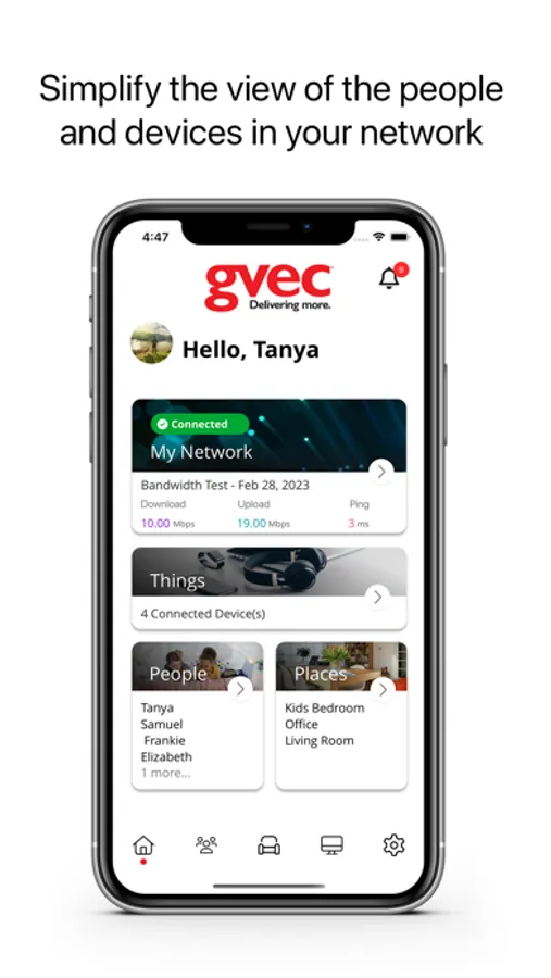GVEC WiFi provides subscribers with the tools to secure and take control of their home Wi-Fi network. Protect your home with app features like network security, password and SSID management. Take control with app features such as parental controls, device management, view connected devices, and perform bandwidth speed tests