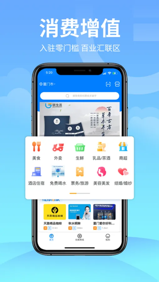 一家专注于线上线下联合购物的高性价比第三方社交电商平台。联生活致力于扶持线下实体商家、地方特色产品,以线上百亿消费补贴、裂变式抽奖拼团营销扩大产品销量,助力实体经济与互联网经济;会员可以在线下联区消费获取等额兑换券。不仅如此,会员通过发起和家人、朋友的拼团,以更优惠的价格,拼团购买优质商品,以社群私域流量变现实现产品扩销,形成联生活独有的新社群电商思维。