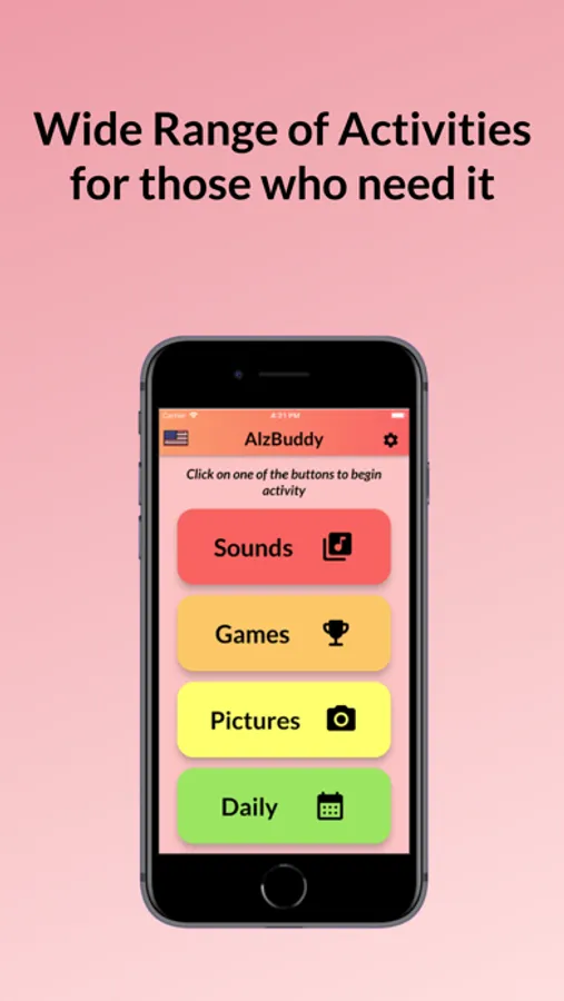 AlzBuddy is an interactive memory care assistant aimed at engaging seniors, especially those living with early-stage Alzheimer’s and dementia. The app’s simple yet elegant design paired with its research-based typography emphasizes convenience, utility, and interactivity. AlzBuddy, downloaded over 7,000 times to date in over 30 countries, contains three core modules: Sounds, Games, and Pictures.