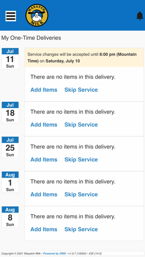 Change your standing order, add or remove items from your next order, or skip a delivery if you will be out of town, all from the convenience of your phone.