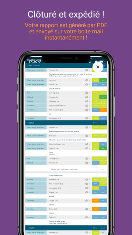 Des templates existants et configurables à l’infini. Des pièces et éléments constitutifs adaptables à chaque situation. Des cotations, photos et notes associées pour chaque élément évalué et bien plus encore... Check-immo vous permettra de sortir des rapports irréprochables dans un temps record !