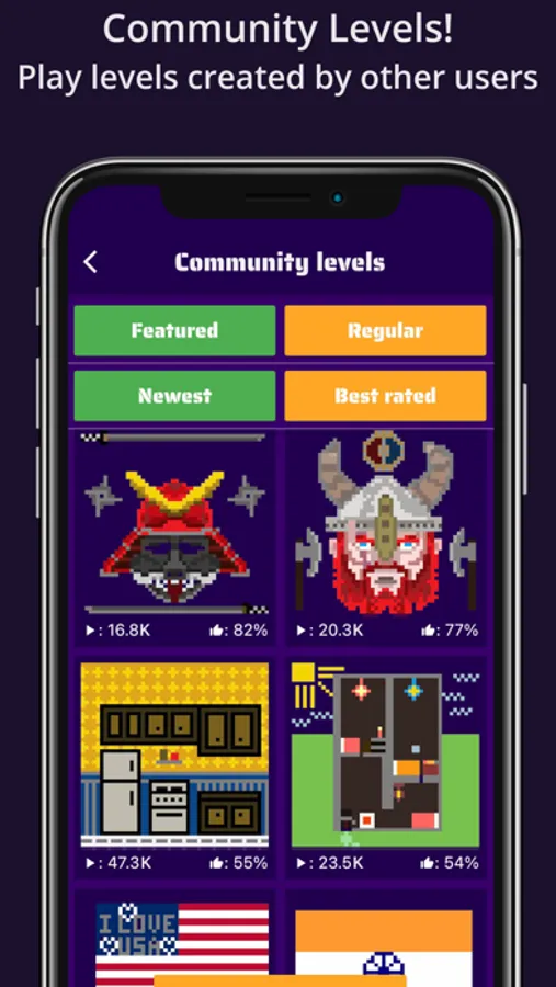 In version 6.0, we also introduced community levels, which are created and shared by our extremely talented users. New community levels will be added everyday and you can vote on them. You can of course also create your own levels and share them with your friends to play directly.