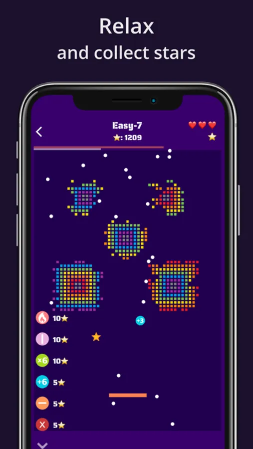 Please keep in mind, no matter which universe you’re in, the ultimate goal is to catch as many power-ups as possible and multiply the balls. In each level, you can collect maximal 3 stars, which then can be used to “buy” power-ups.