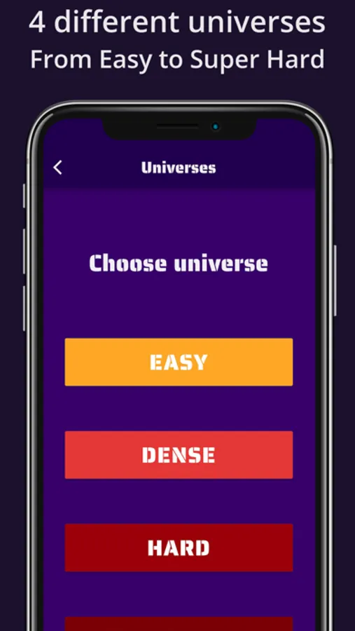 - 4 universes to relax (Easy), satisfy (Dense) and challenge (Hard & Super Hard).