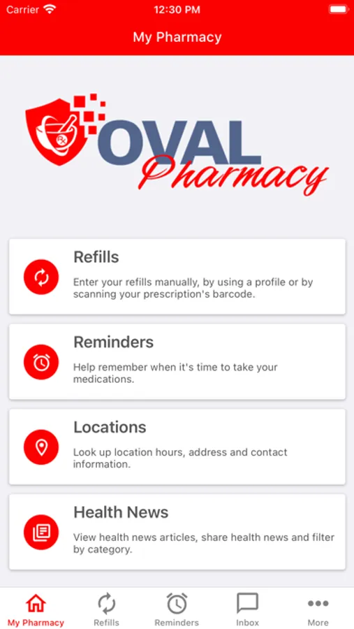 The Oval Pharmacy app allows you and your family to securely communicate with your local pharmacy. Refill your prescriptions with one click, get refill reminders, get discounts at your local pharmacy, get savings on brand drugs and access Pharmacist written pages that help you understand your condition or medications.