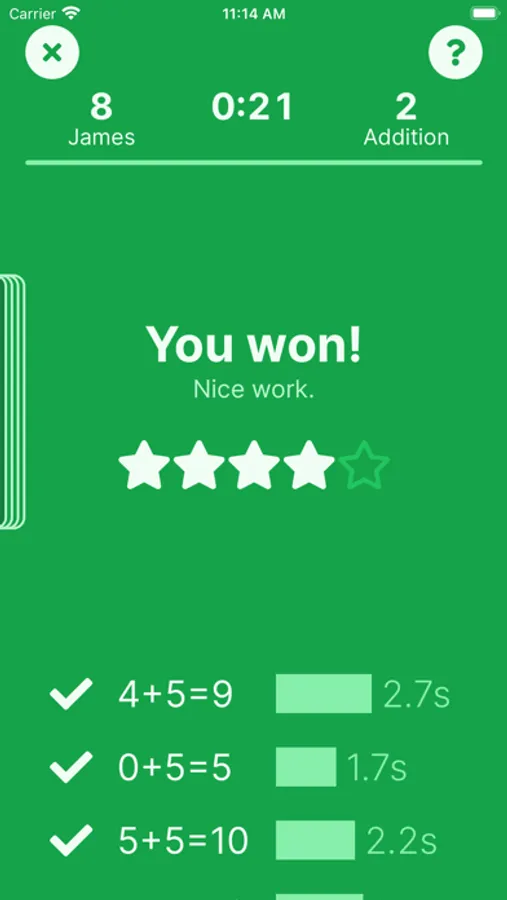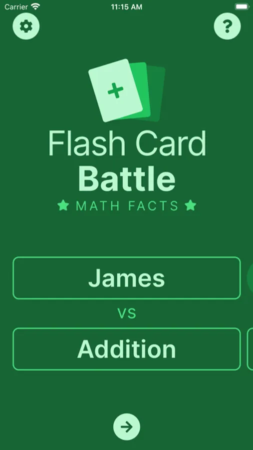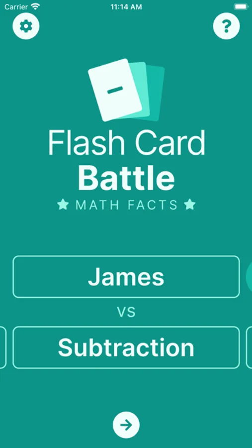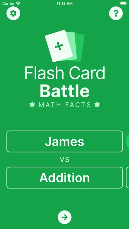 Learn math facts in a battle with flash cards! Pick an opponent: addition, subtraction, multiplication, or division. Choose a deck of cards. And then battle!