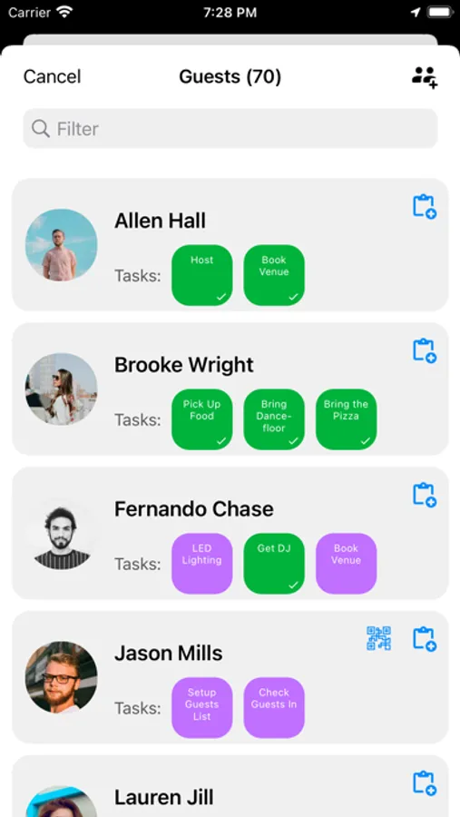 - Keep track of which tasks have been completed simply by opening the interactive guests list.