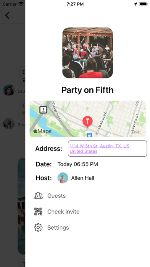 Gather is the first app for planning any kind of event! — We make it easy to quickly invite your friends to events/parties, chat with all of your guests, and arrange party logistics all in one platform. All of your party details will be on hand and easy to access, no more scrolling through a group chat or texting your friend to find the address or time.