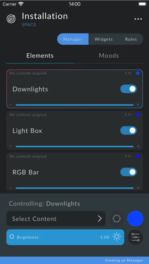 Spaces brings together integrators and end-users with the configuration tools needed to quickly and efficiently deploy lighting. We understand that every user will have different needs, so Spaces allows you to create bespoke widgets to fit different requirements.