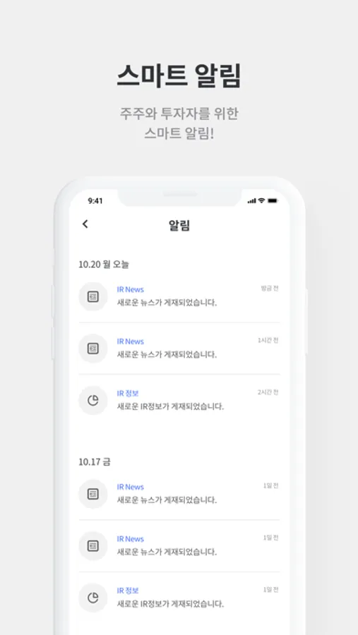 - 최신 IR정보가 업데이트 되면, 실시간으로 알림을 받으실 수 있습니다.