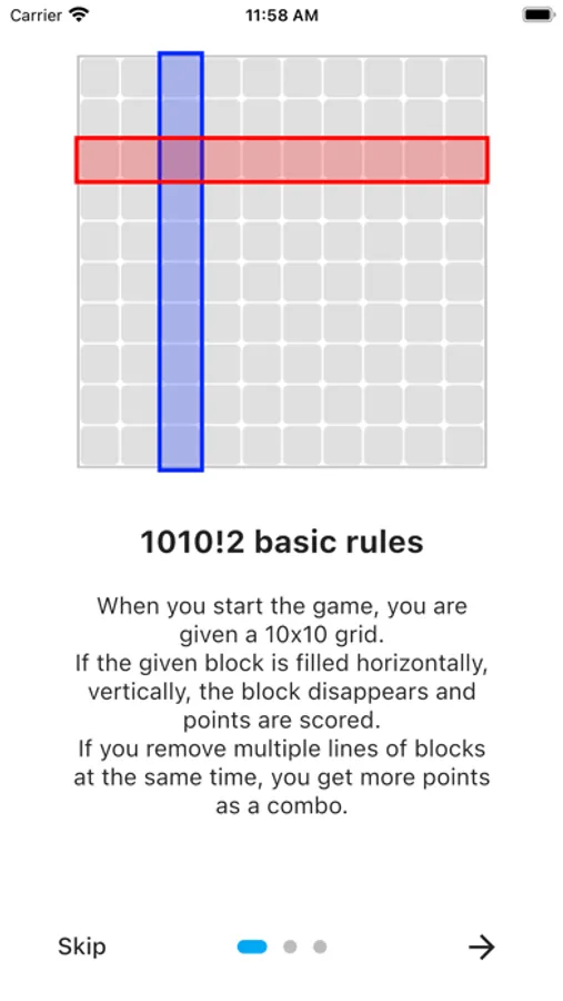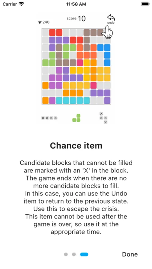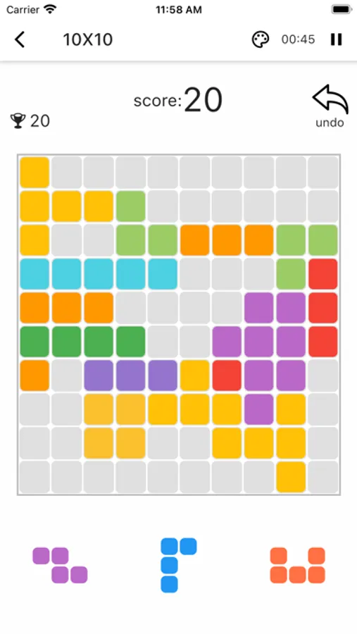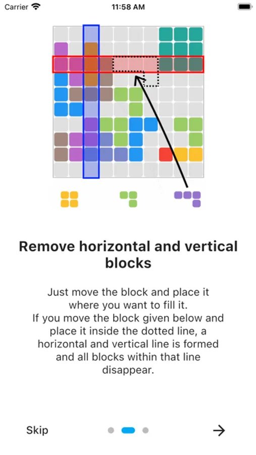 - If you fill the given blocks horizontally and vertically, the blocks disappear and you get points.