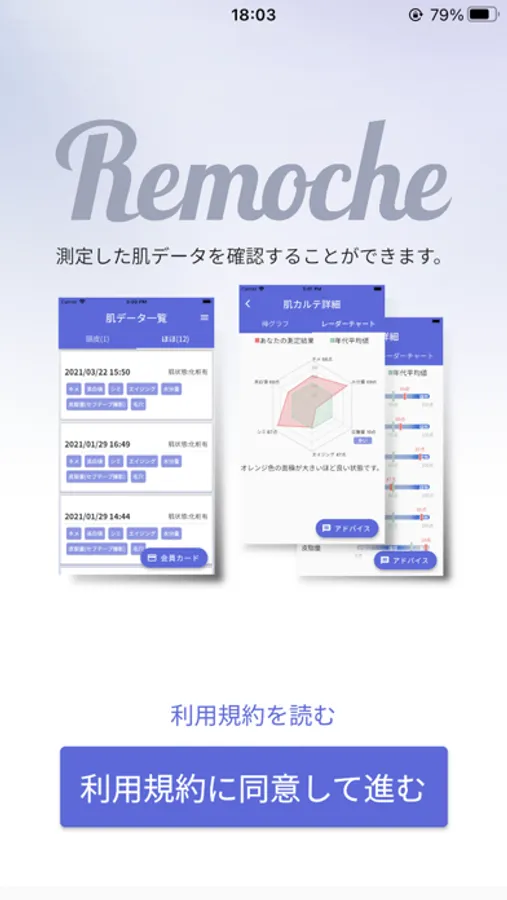 Remoche®は、美容カウンセリングシステムSmart Skin Care®で測定した美容データをお使いのスマートフォンで確認するアプリです。